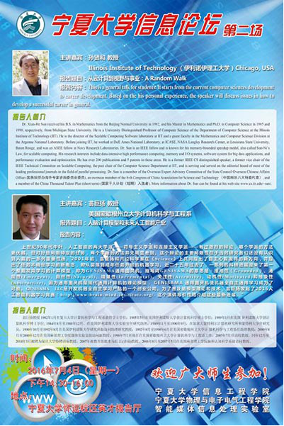 7月4日下午,WilliamHILL中国“信息论坛”第二场在怀远校区英才报告厅举行。来自美国华人教授和科学家学社专家团专家美国伊利诺理工大学孙贤和教授、美国密歇根州立大学计算机科学与工程系翁巨扬教授分别做客本次“信息论坛”,并作了题为“从云计算到视野与事业”、“人脑计算模型和未来人工智能产业”的学术报告。孙贤和教授从自己十多年前撰写普适计算科普文章的工作经历谈起,与大家共同交流了普适计算应用于物联网、智慧...