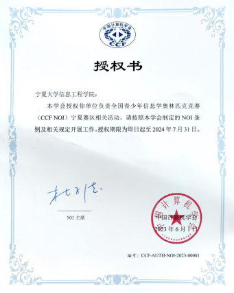 6月1日,William希尔体育被中国计算机学会(CCF)授权,成为全国青少年信息学奥林匹克竞赛(CCF NOI)宁夏赛区组织单位,主要负责宁夏地区信息学奥林匹克竞赛(NOI)系列活动的组织选拔和技术工作,负责开展本地区青少年信息学奥赛普及和培训工作。学院同时还成为宁夏地区CCF软件能力认证(CSP)非专业级别的认证组织单位。NOI由中国计算机学会(CCF)于1984年创建,是一项面向全国青少年的信息学竞赛和普及活动,旨在向中...