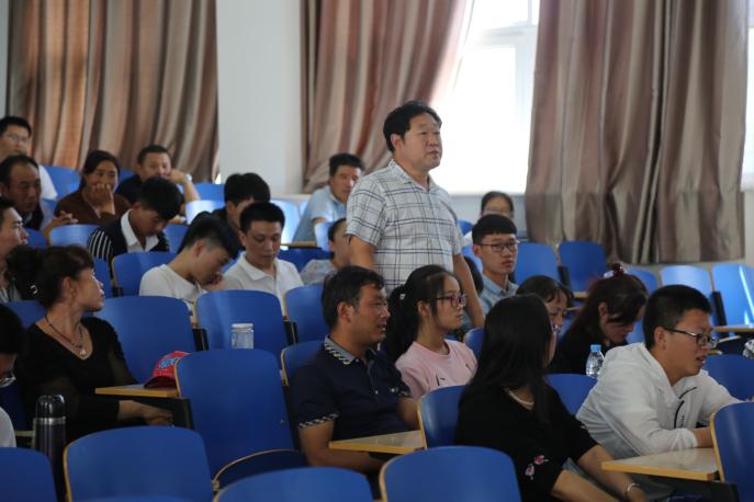 王玉祥介绍了学生工作情况,提醒家长关注学生成绩及身心健康,要重视与学生交流;丁志义再次强调家长要关注学生的学习和生活,大学的素质教育不同于高中教育,适应学习过程的转变非常重要;孙学宏仔细解释了学生入学后的成绩问题,表示希望家长能够帮助学生度过学习转变的过渡期。