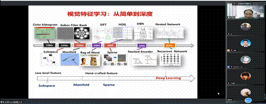 刘青山教授报告题目为“视觉特征学习及应用”。他以视觉特征学习作为主题,从“百闻不如一见”开始,依次介绍了视觉特征学习的应用前景、机器学习的关键,以及在进行学习时面临的诸多挑战,然后从简单到深度对视觉特征学习进行了讲解。紧接着介绍了稀疏低维特征表达及深度特征学习,并对Cascade regression model和Dual sparse constrained cascade regression model进行了讲述,最后从视觉特征学习的角度,结合遥感图像分析等应用分享了近年来的一些研究进展。