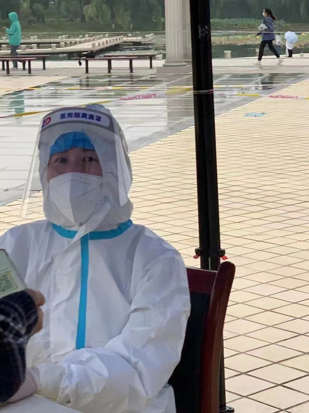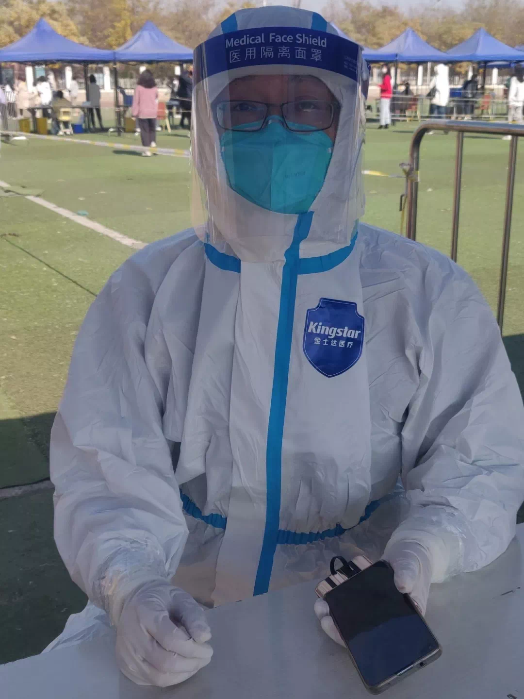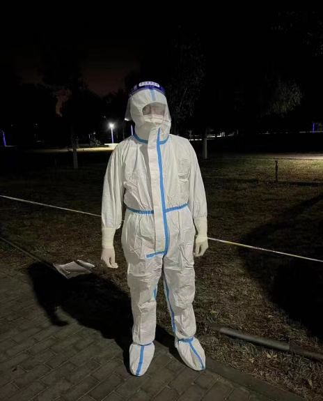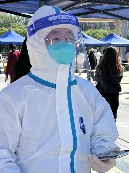 10月13日以来,学校疫情防控进入紧要关头之时,李帅、乃永强老师主动前往贺兰山校区疫情防控最前线,负责兰山公寓楼的楼层值守工作。两位老师每天需值守12小时,负责包抓学生抗原检测、核酸检测,统计、配送每日三餐,处理日常垃圾,洗漱间消毒、管理学生错峰使用卫生间等具体工作。在没有值守任务时,两位老师还需要完成教学任务。李帅老师说,“每当穿上这身防护服,就能感受到这身“大白”之下沉甸甸的使命和责任”。从教师到志愿者,从教室到公寓楼,他们用独特的方式践行着“学生在哪里,老师就在哪里”的责任担当。