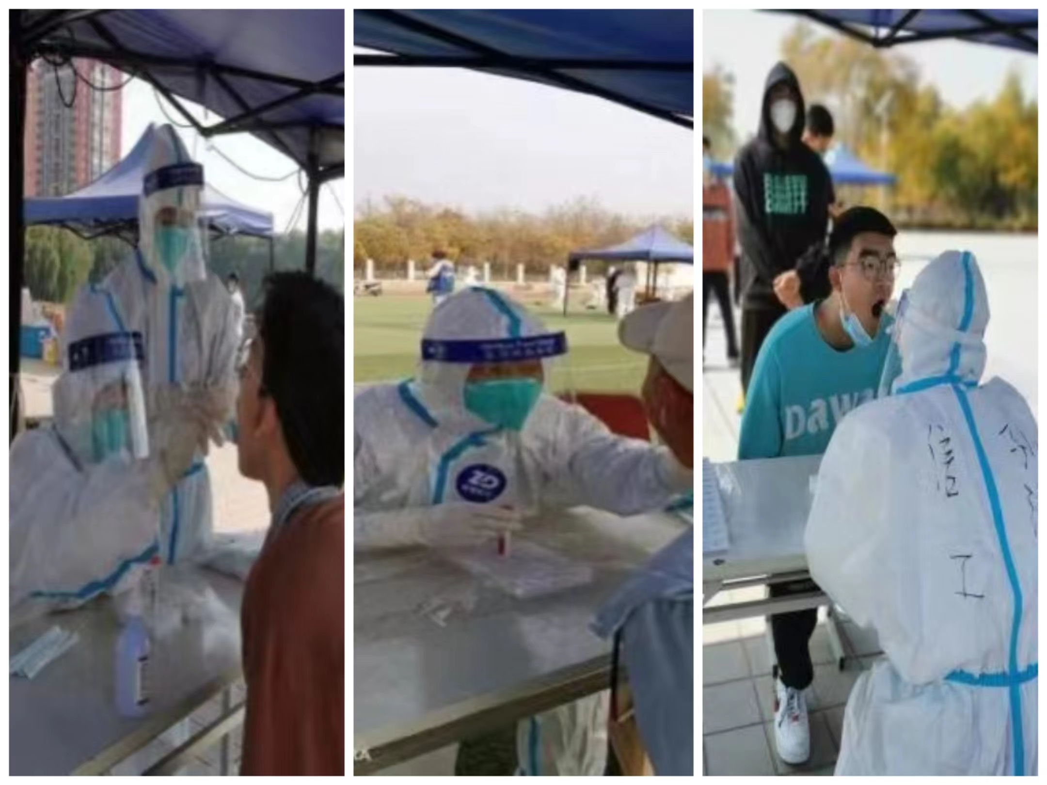 李贯峰、武向娟、孙淑玲自10月22日入校以来,接受了专业医生短暂的培训和训练后,走马上任分别承担了怀远校区及文萃校区为学生做核酸检测的“重任”,此项工作任务艰巨而又需承担一定风险,3位老师没有任何的拒绝和怨言,主动承担,勇挑重担。同时,3位老师还承担着相应校区的安全巡查工作,成为每个校区忙碌而又充实的安全守护者。