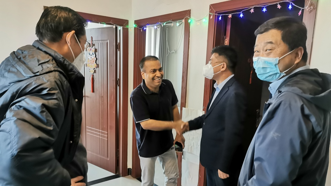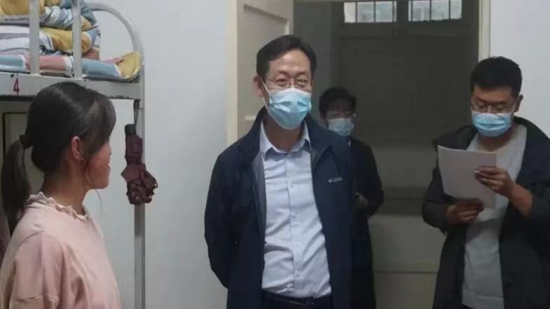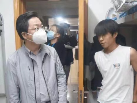 为保证学生核酸检测现场井然有序,应检尽检不漏一人,院党委书记车进、院长冯锋、党委副书记孙莉、副院长杨军、刘昊纷纷主动担当,申请入校,下沉一线,前往核酸检测现场组织学生,维持秩序,有力的保障了我院怀远校区一千余名学生核酸采样现场秩序。同时,院领导不定期走进学生寝室、前往教师公寓慰问外教老师,了解师生疫情期间的学习、生活,细致做好每一位师生思想工作。在校值守院领导还承担着怀远校区的安全巡查工作,为校区安全稳定发挥积极的作用。此外,副院长杨军主动承担怀远校区疫情防控包抓工作组联络员的工作任务。党委副书记张振霞、副院长杜方在线上持续保障着学生安全稳定及入校工作专班人员调配等工作。院领导干部工作在前、引领在前,彰显着责任和担当,为学院战“疫”工作筑起一道坚不可摧的防线。