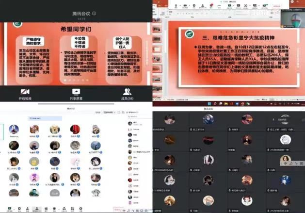 为避免学生在封校管理期间不良情绪的滋生蔓延,出现心理焦虑,学院前后开展院领导走进学生班级“七进一交友”网络文明安全主题班会、辅导员年级线上会议、班主任云查寝、主题班会,班主任线上“大思政”课、公寓楼五级管理体系线上会议、学生干部线上会议等,多角度、全方位,细致做好学生思想工作。院领导、辅导员、班主任分层次、分主题展开思想教育,提升学生大局观和纪律性,提醒学生高度重视疫情防控各项工作要求,从自身情绪管理和健康检测做起,合力保障全体学生思想稳定、健康安全、学习有序。同时,学院成立以副书记张振霞、全体辅导员、学生干部为管理层面的五级公寓管理体系,分校区、分楼宇设微信群,设楼长、楼层长,充分发挥宿舍长的作用,关注每一名学生每日学习、生活和需求。