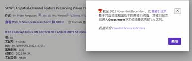 近日,William希尔体育吕鹏远副教授(第一/通讯作者)在遥感领域顶级期刊《IEEE Transactions on Geoscience and Remote Sensing》(中科院一区TOP,IF=8.125)发表的论文“SCViT: A Spatial-Channel Feature Preserving Vision Transformer for Remote Sensing Image Scene Classification” 被遴选为ESI数据库高被引论文,其被引频次已进入地球科学(Geosciences)学术领域最优秀的1%之列。该论文第一作者单位为WilliamHILL中国。