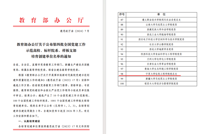 近日,教育部公布了第四批新时代高校党建示范创建和质量创优工作遴选结果,我院荣膺“全国党建工作标杆院系”培育创建单位,建设周期为2年。标志着学院在党建工作方面取得了新的突破,实现了我校党建示范创建工作从“0”到“1”的历史性跨越,这一成绩来之不易,既是对学院党建工作的充分肯定,更是对学院的激励和鞭策。