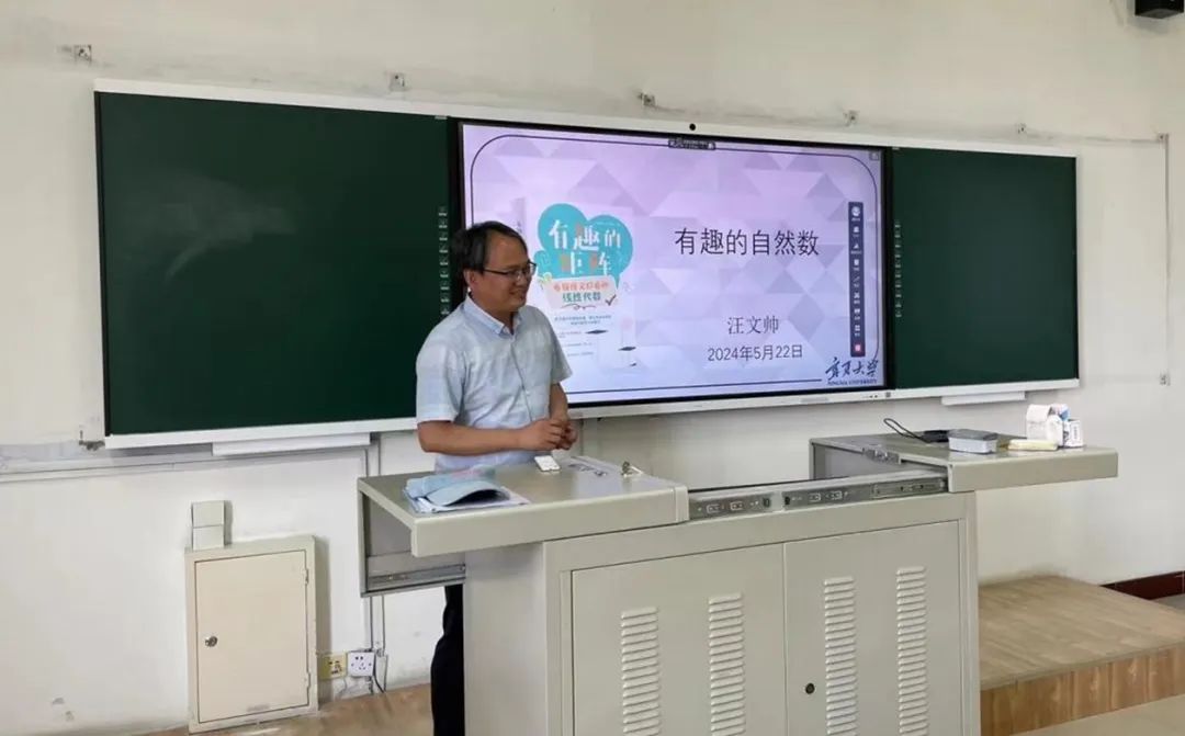 座谈会结束后,汪文帅为西夏区第十一小学三年级学生开展了题为“有趣的自然数”的讲座,讲座通过巧妙地运用自然数、计数法和田忌赛马等内容,激发了孩子们对数字世界的好奇心和思考。十一小的学生们积极提问,表现出浓厚的学习兴趣,现场气氛热烈而充满活力。