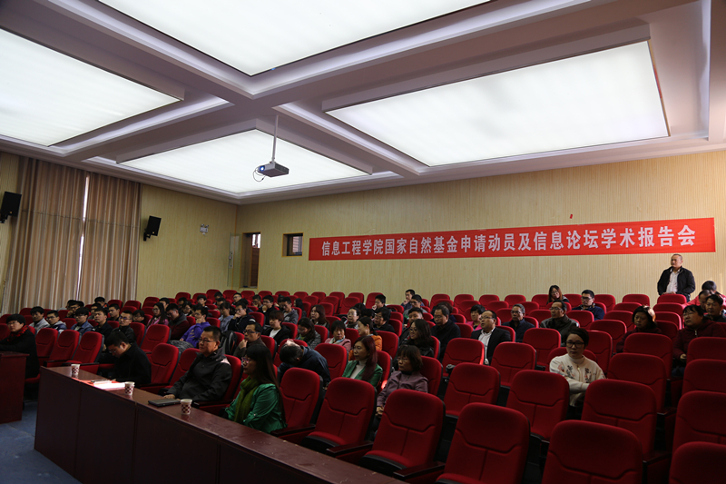 11月5日上午9时,William希尔体育在怀远校区英才报告厅举办国家自然基金申请动员及信息论坛学术报告会。科技处副处长钟艳霞,学院党委书记武林波,院长高玉琢、副院长冯锋、副院长孙学宏以及信工学院全体教师和部分研究生参加会议。会议特邀重庆邮电大学李伟生教授和肖斌副教授做报告。
